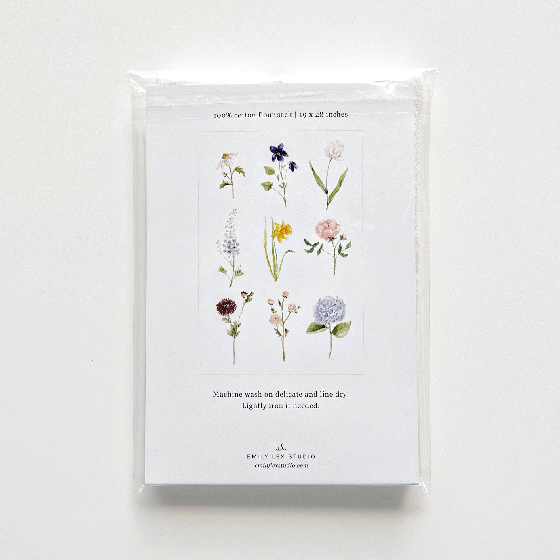 Add a touch of delight to your kitchen with this 100% cotton tea towel. Garden flower illustrations cover the towel making it perfect for washing up, lining a basket, or displaying.