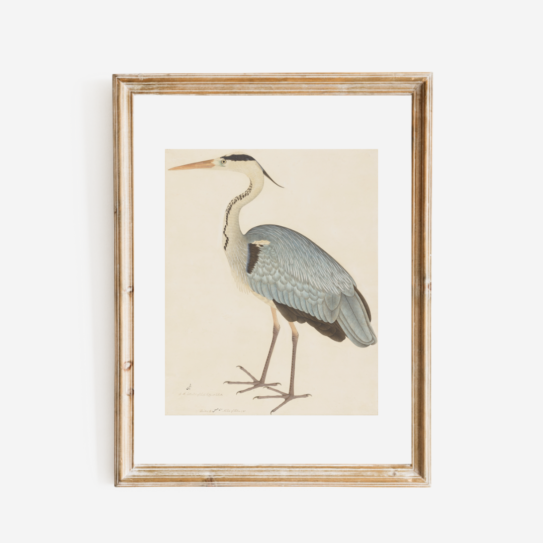 Replication print by Ram Das titled "Grey Heron" (18th century)