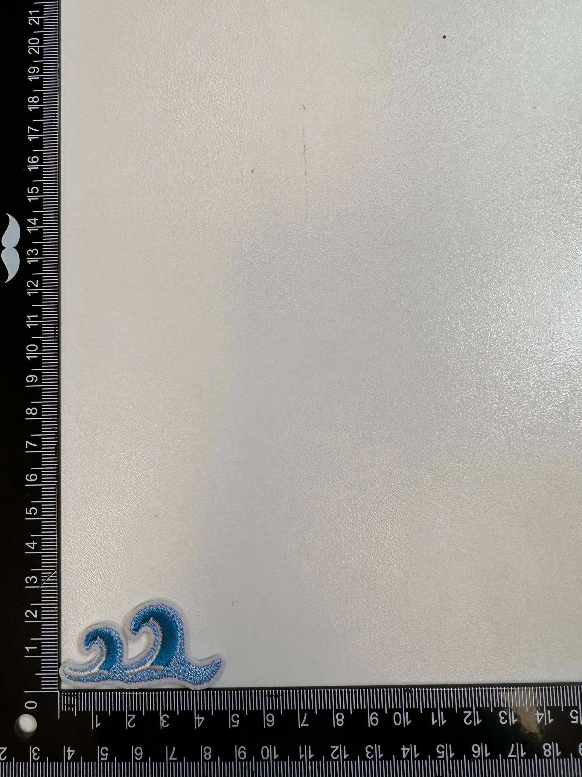 Ocean waves patch 109% embroidery with iron on backing, measures 5cm x 2.5 cm